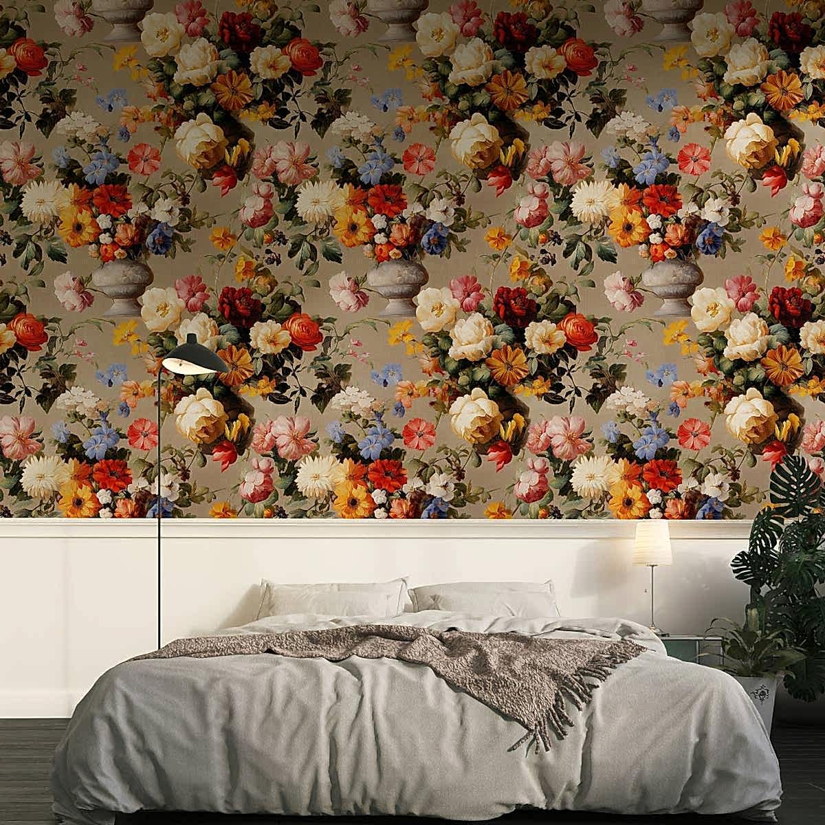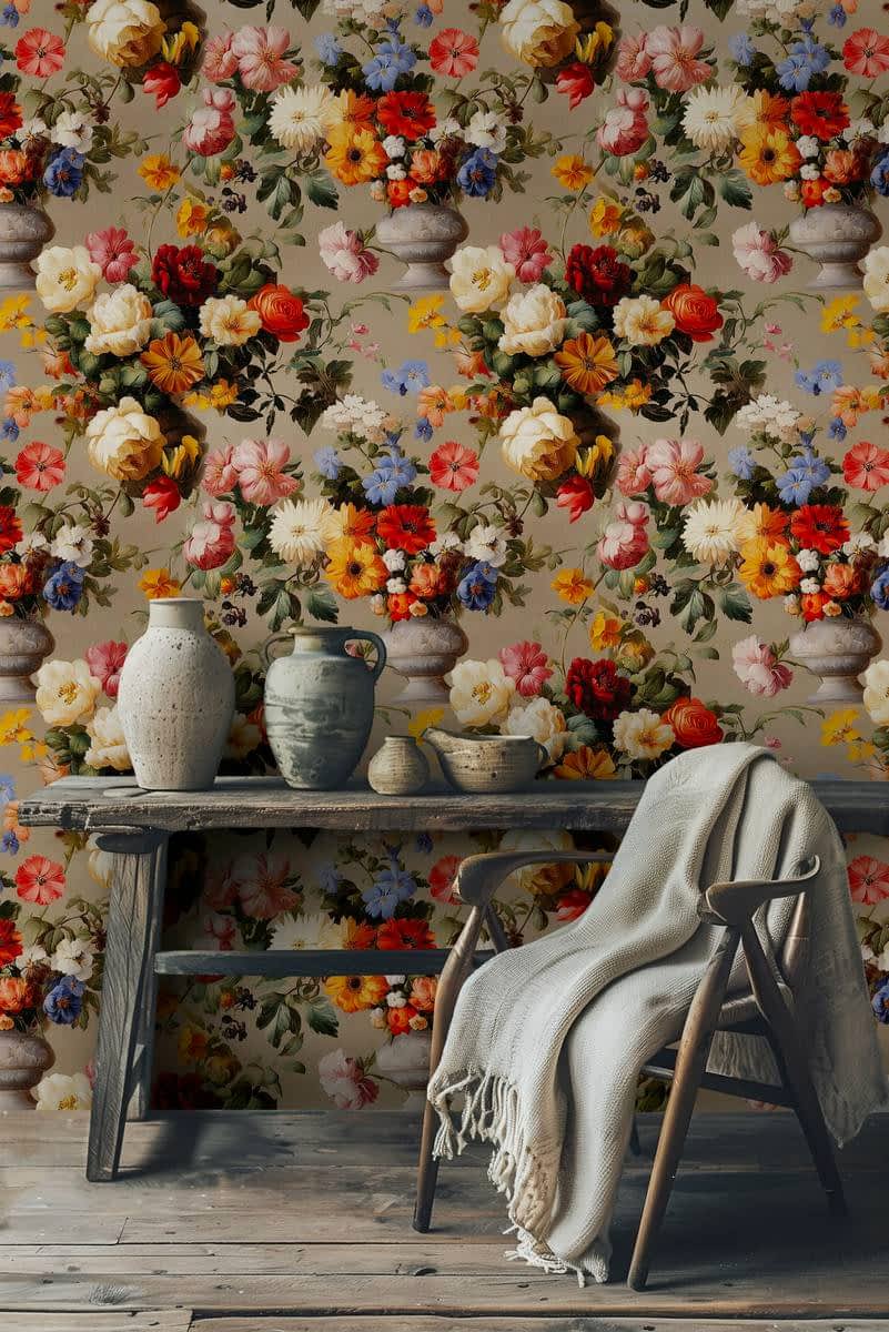 Bu çarpıcı duvar kağıdı duvar resmiyle zamansız bir çiçek şaheserinin güzelliğini evinize taşıyın. Klasik bir natürmort düzenlemesinde canlı çiçeklerin yemyeşil bir dizisine sahip olan bu yüksek kaliteli duvar kağıdı, her odayı sanatsal bir cennete dönüştürür. Orta parça, yumuşak pastel tonlardan zengin, cesur tonlara kadar çeşitli renklerde papatyalar, şakayıklar ve kır çiçekleri de dahil olmak üzere çeşitli çiçek buketleriyle dolu zarif bir taş vazodur. Sıcak, nötr bir arka plana karşı yerleştirilen bu duvar kağıdı, drama ve sofistikeliğin mükemmel bir dengesini yaratır. Oturma odalarında, yatak odalarında veya yemek alanlarında bir ifade duvarı oluşturmak için ideal olan bu duvar resmi, alanınıza derinlik, karakter ve doğanın güzelliğinden bir dokunuş katar.