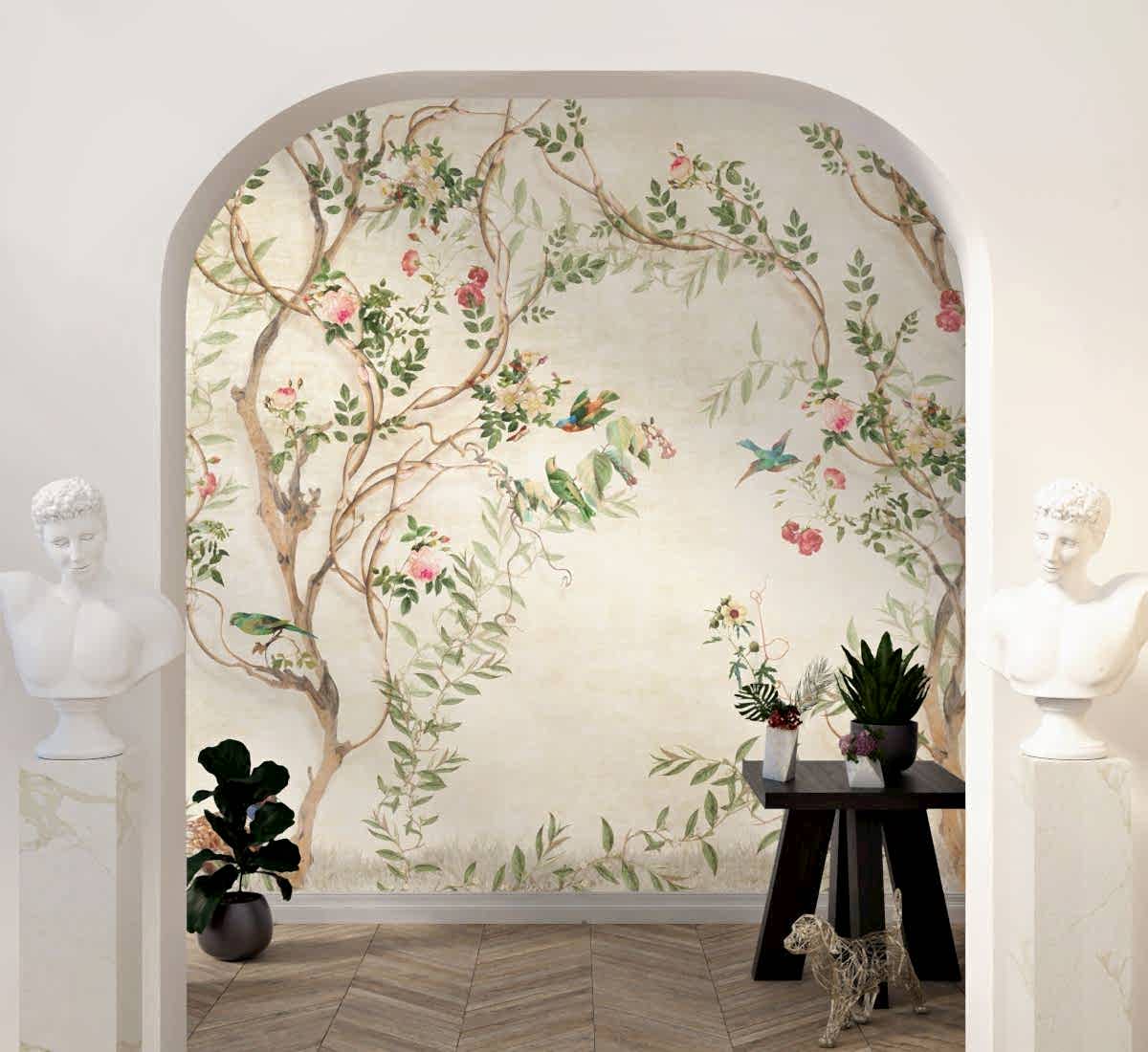 Bej zemin üzerine çizilmiş bu chinoiserie tarzı duvar kağıdı, kuşlar ve çiçeklerle doğadan ilham alan zarif bir kompozisyon sunar. Ferah ve sade yapısıyla özellikle yatak odası, oturma alanı ve giriş hollerine doğal bir zarafet kazandırır. Country, klasik veya bohem dekorasyonlarla mükemmel uyum sağlar. Mekânınıza hem doğallık hem de sanatsal bir atmosfer katmak için ideal seçim.
