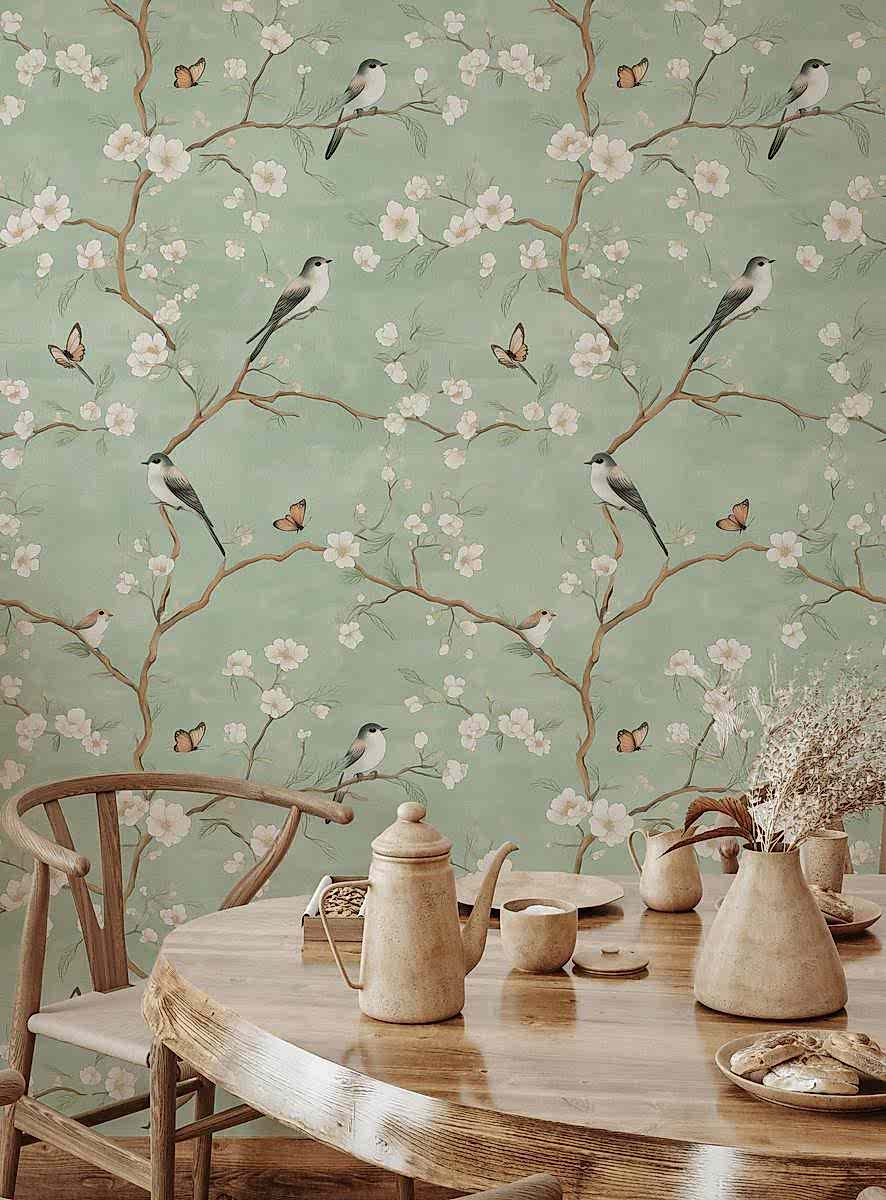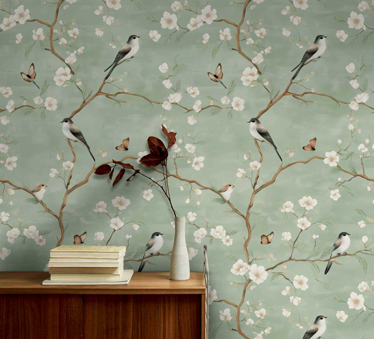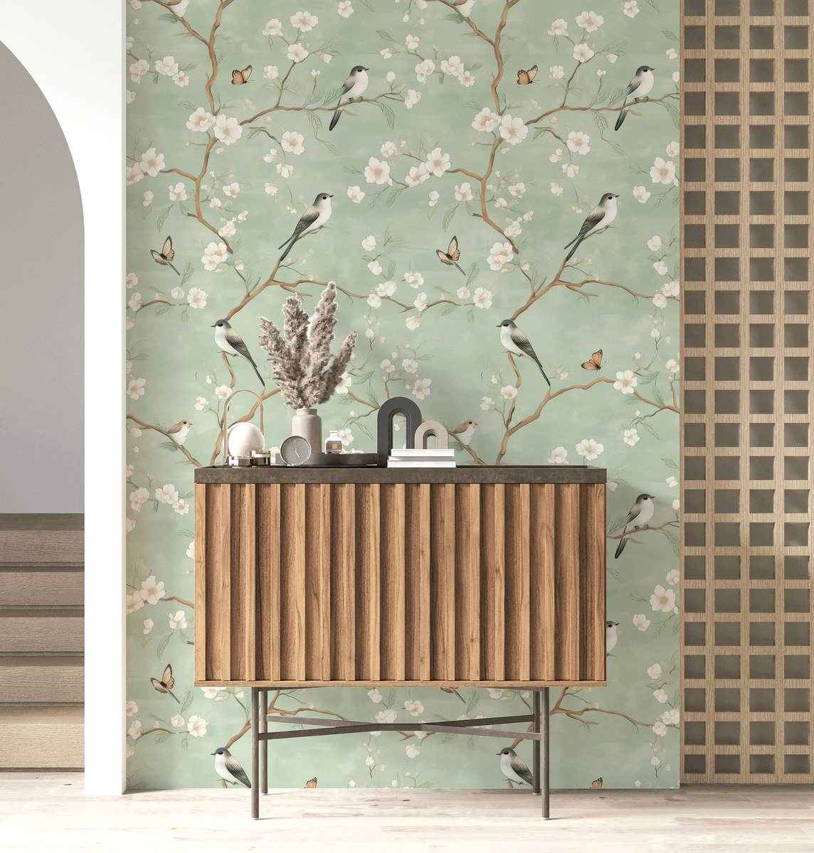 Zarif “Huzurlu Çin Tarzı Kuşlar ve Çiçekler” duvar kağıdımızla mekanınızı güzelleştirin. Bu büyüleyici tasarım, sakinleştirici adaçayı yeşili bir arka planda çiçek açan kiraz çiçeği dalları arasında tüneyen narin ötücü kuşları içeriyor. Yumuşak beyaz çiçeklerin, zarif kuşların ve uçuşan kelebeklerin karmaşık detayları, oryantal zarafetin bir dokunuşuyla sakin, doğadan ilham alan bir atmosfer yaratıyor. Yatak odaları, oturma odaları veya dingin ve sofistike bir ambiyansa ihtiyaç duyan herhangi bir alan için mükemmel. Yüksek kaliteli duvar kağıdımız, Çin bahçesinin zamansız güzelliğini iç mekanlara taşıyarak her mevsimde huzurlu bir sığınak sunuyor.