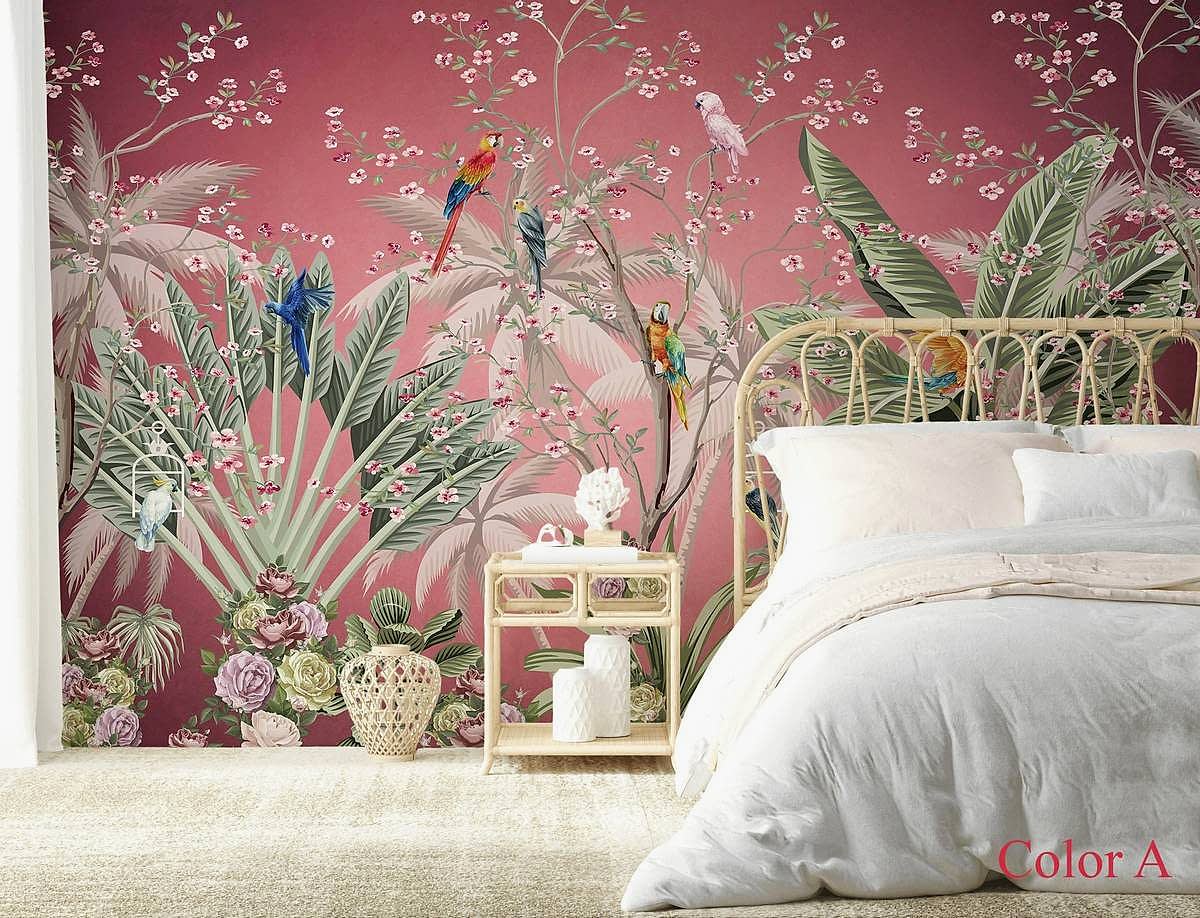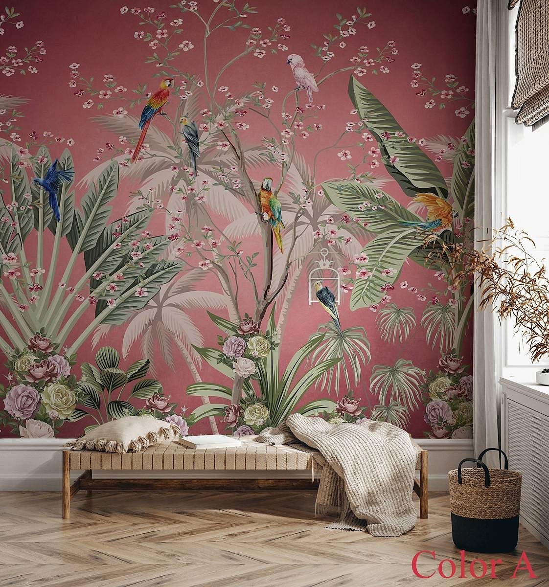 Egzotik kuşlar, zarif çiçek dalları ve tropikal yapraklarla bezenmiş bu pembe fonlu duvar kağıdı, yaşam alanlarınıza canlı ve sofistike bir hava katar. Oturma odası, yatak odası veya özel köşeler için mükemmel bir tercihtir. Yüksek kaliteli baskısı ile dikkat çeker, mekanınıza benzersiz bir derinlik kazandırır.