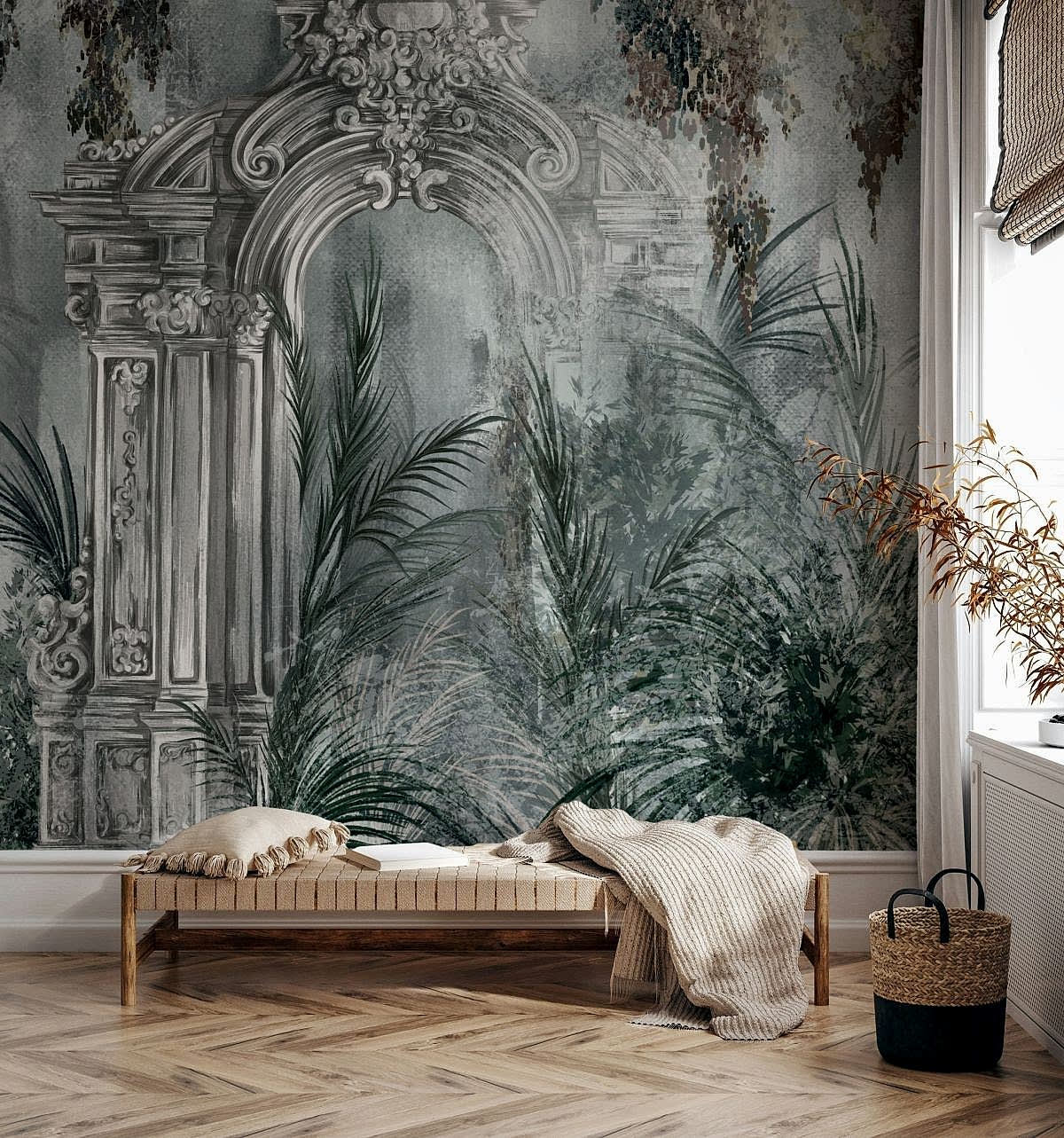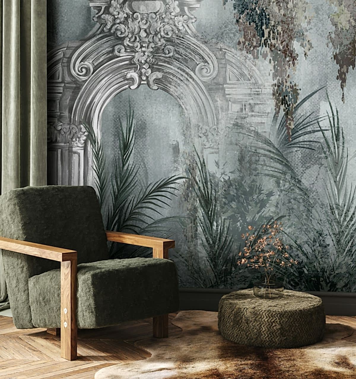 Bu lüks duvar kağıdı koleksiyonu, klasik barok mimari detaylarının sofistike çizimleri ve egzotik botanik unsurların harmonik birleşiminden ilham alıyor. Zengin ve derin tonlar, her mekana asil bir atmosfer katar. Elit Botanik & Barok Desenli Duvar Kağıdımız, yaşam alanlarınızı şıklıkla dönüştürmek isteyenler için idealdir. Üstün kaliteli materyallerle üretilen bu duvar kağıdı, dayanıklılığı ve kolay uygulanabilir yapısıyla öne çıkar. Işığın oyununu yansıtan detaylarla zenginleşen tasarım, her bakışta farklı bir hikaye anlatır. Bu duvar kağıdıyla, oturma odanızdan yatak odanıza, çalışma alanınızdan koridorunuza kadar her köşeyi bir sanat eserine dönüştürebilirsiniz. Antik zarafeti modern dokunuşlarla yeniden yorumlayarak, evinize zamanüstü bir şıklık katın