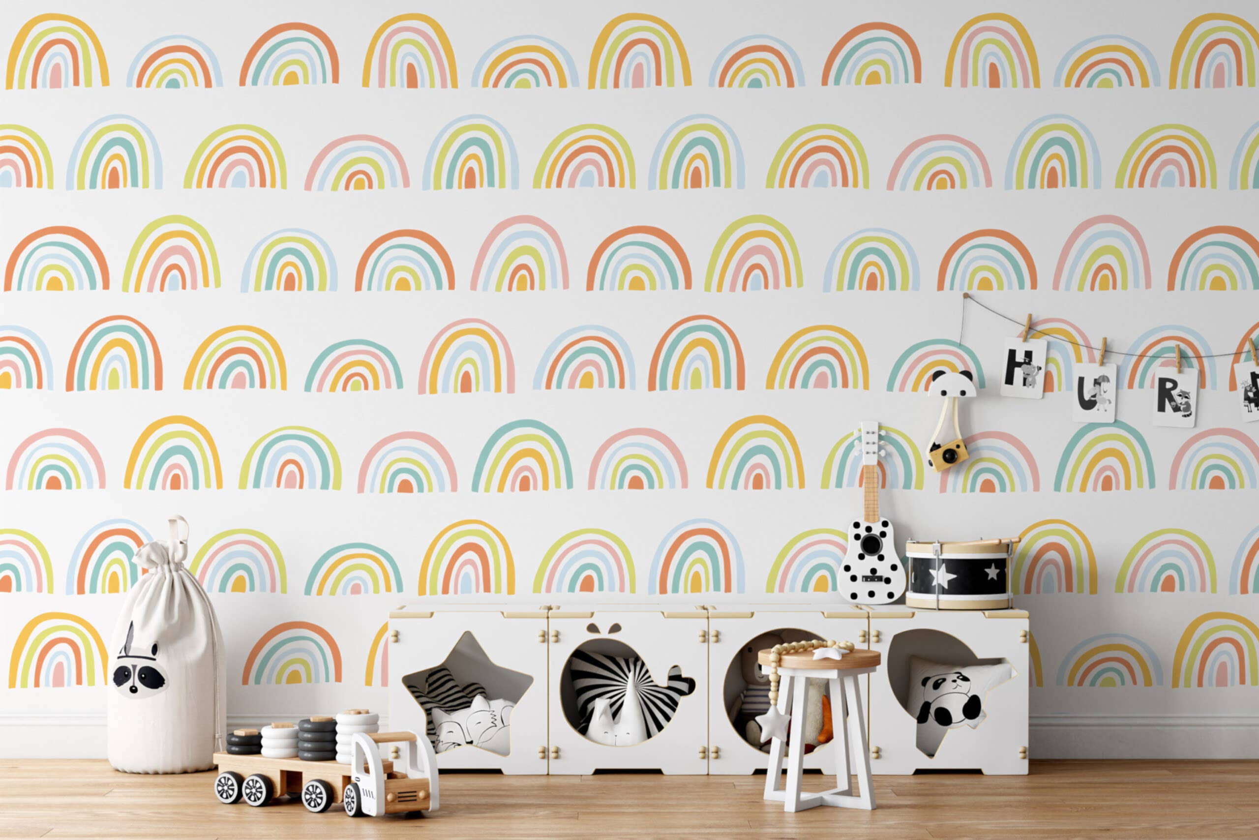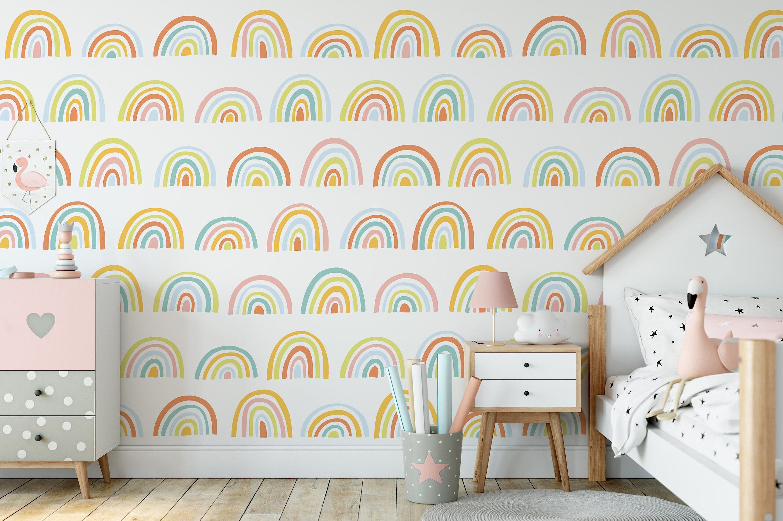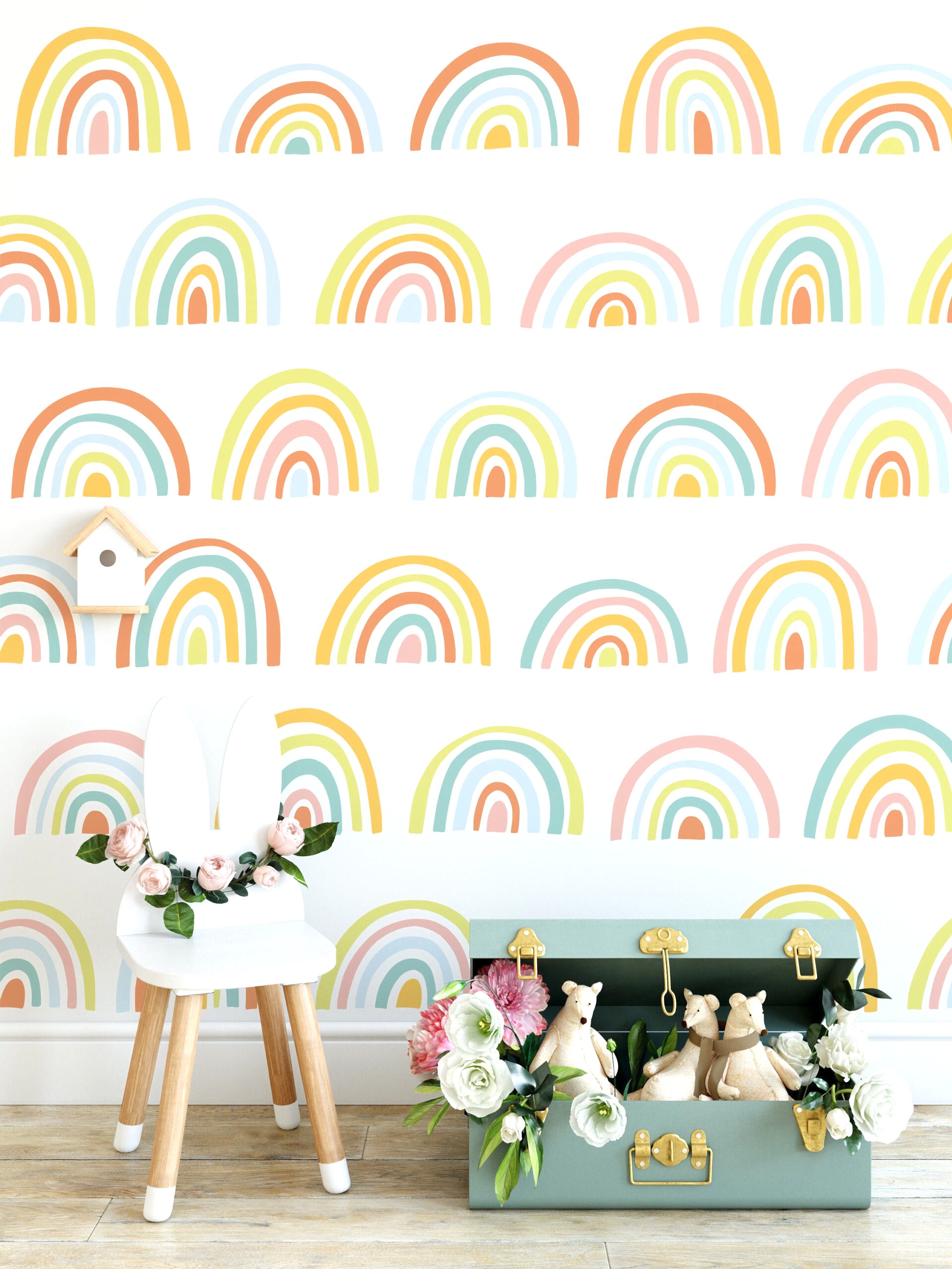 sitede çok fazla seçenek var oldukça kararsız kaldık. bu gökkuşağı duvar kağıdı kızımın odasına gyet güzel oldu
