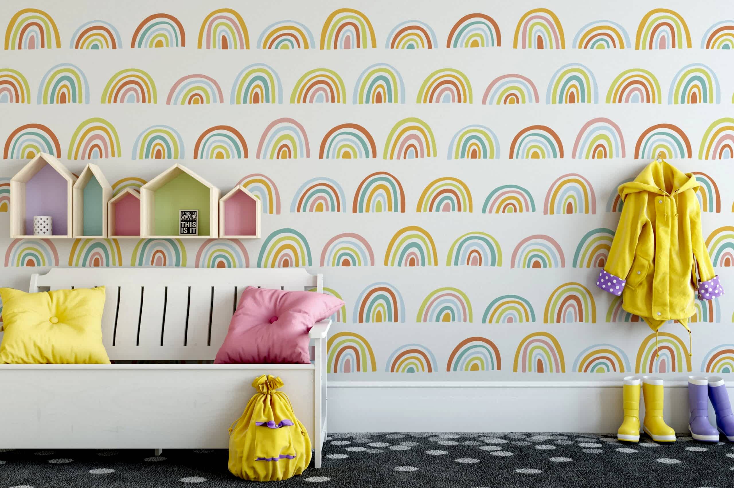 Çocuk Duvar Kağıdı Geometrik Yarım Daire Desen Gökkuşağı Duvar Kağıdı