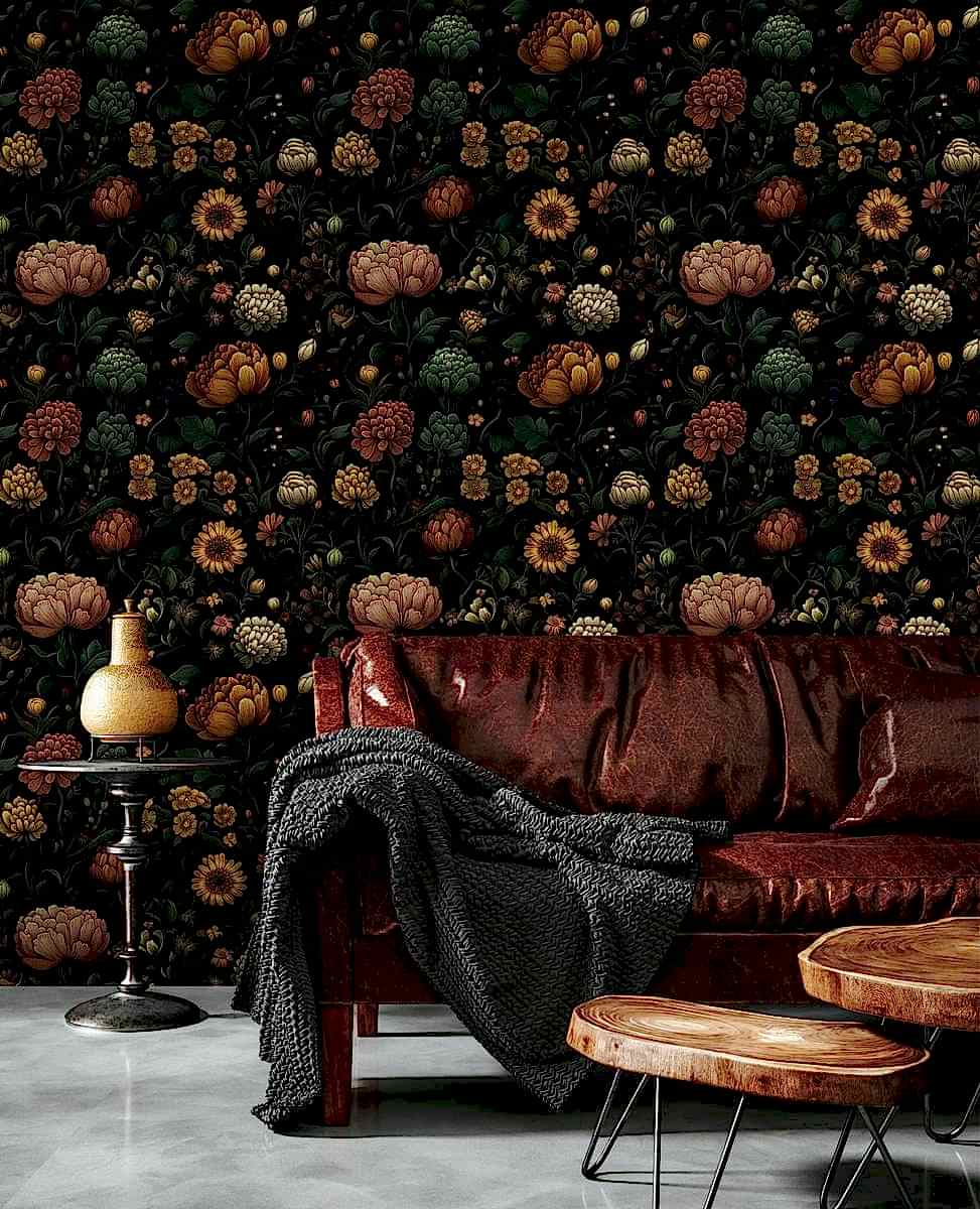 Tamamen çiçek açan canlı çiçeklerin zengin ayrıntılara sahip botanik illüstrasyonunu içeren bu çarpıcı koyu çiçekli duvar kağıdı duvar resmiyle mekanınızı güzelleştirin. Derin, koyu bir arka plan üzerinde yer alan yemyeşil ve sıcak renkli çiçekler çarpıcı bir kontrast oluşturarak bu duvar resmini her odaya büyüleyici bir katkı haline getiriyor. Karmaşık desenler ve çarpıcı aydınlatma, derinlik ve incelik katıyor; koyu çiçek estetiğini takdir edenler ve ev dekorlarına zarif bir dokunuş katmak isteyenler için mükemmel. Oturma odaları, yatak odaları veya cesur ama zarif bir ifade gerektiren herhangi bir alan için idealdir.