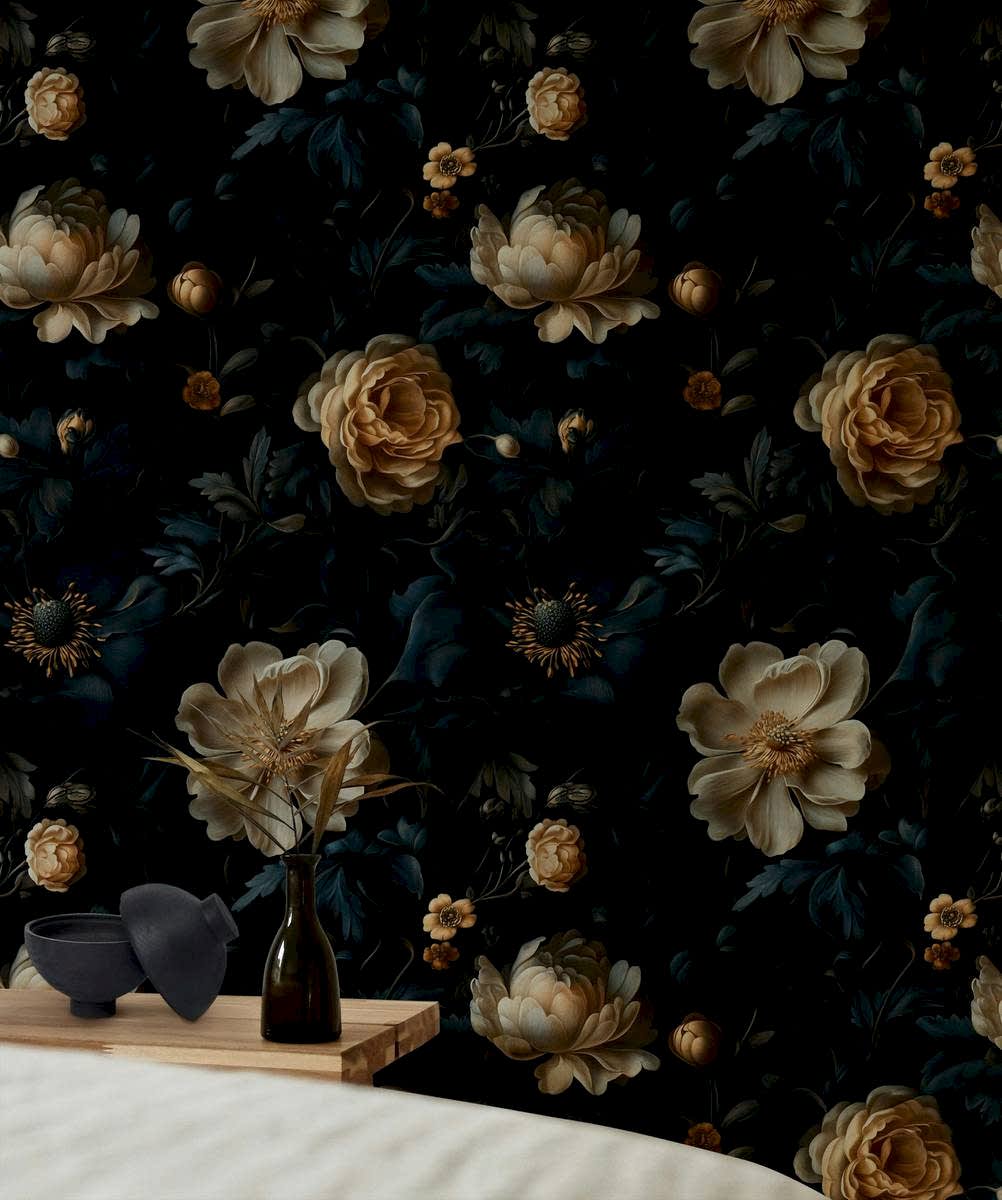 Bu lüks koyu çiçekli duvar kağıdıyla iç mekanınızı yükseltin, altın ve lacivert botanik unsurların zarif bir kombinasyonunu sunar. Bu zarif tasarım, oturma odanızda, yatak odanızda veya ofisinizde dramatik bir ifade duvarı oluşturmak için mükemmel olan her odaya bir sofistike dokunuş getirir. Soy ve yapıştır uygulaması, kolay ve dağınıklıksız bir kurulum sağlayarak alanınızı yenilemenizi kolaylaştırır. Derin, kasvetli bir arka plana karşı karmaşık çiçekli detaylar, dekorunuza derinlik ve stil katarak onu her ortam için zamansız bir seçim haline getirir.