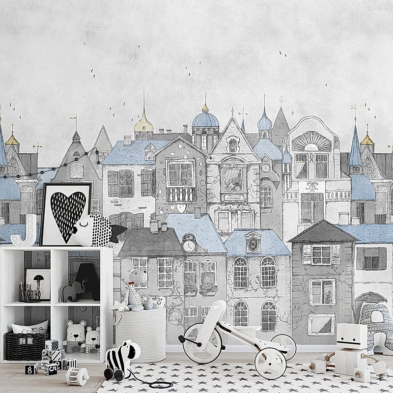 Kuru Kalem Boyamalı Şehir Manzaralı Duvar Kağıdı