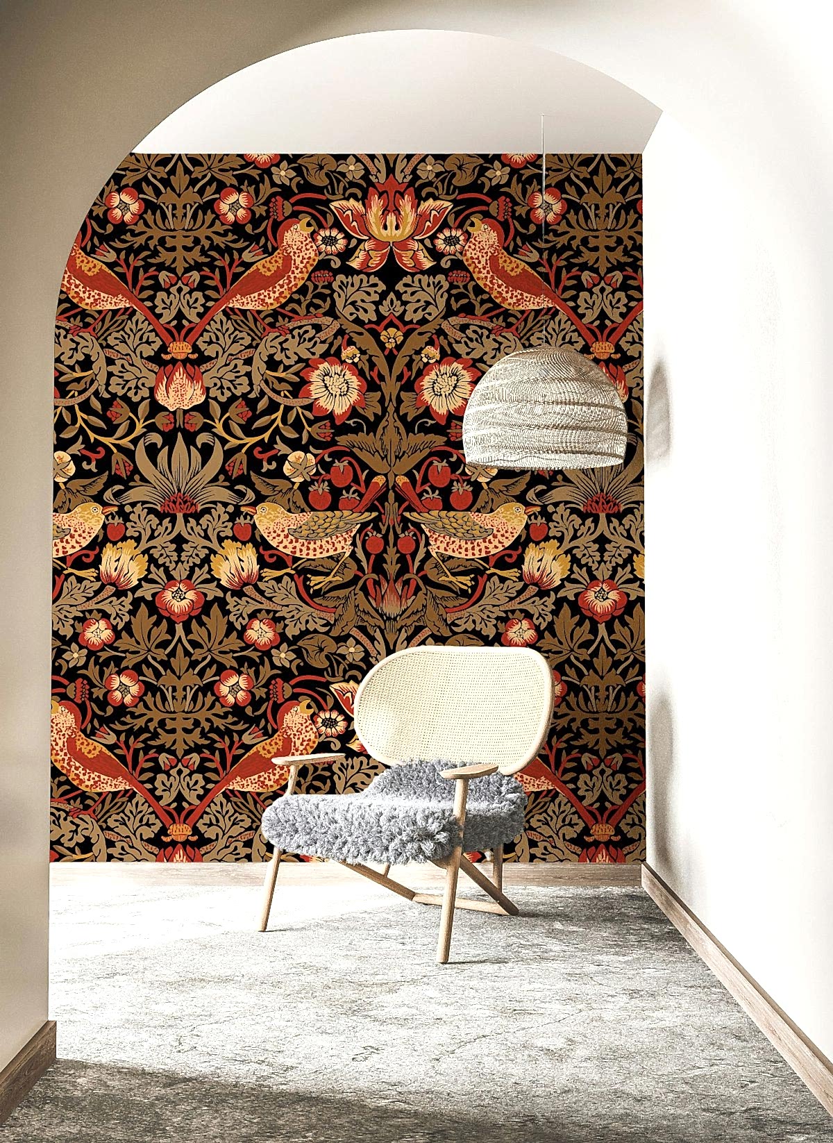 William Morris’in sanatsal dehasından ve ünlü “Çilek Hırsızı” tasarımından ilham alan Lüks Vintage Çiçek ve Kuş Duvar Kağıdımızın zarafetini kucaklayın. Bu duvar kağıdı, karmaşık barok unsurları Morris’in çalışmalarının klasik çekiciliğiyle harmanlıyor; yemyeşil, canlı bir palette çiçekler, kuşlar ve meyvelerden oluşan karmaşık bir duvar halısı içeriyor.