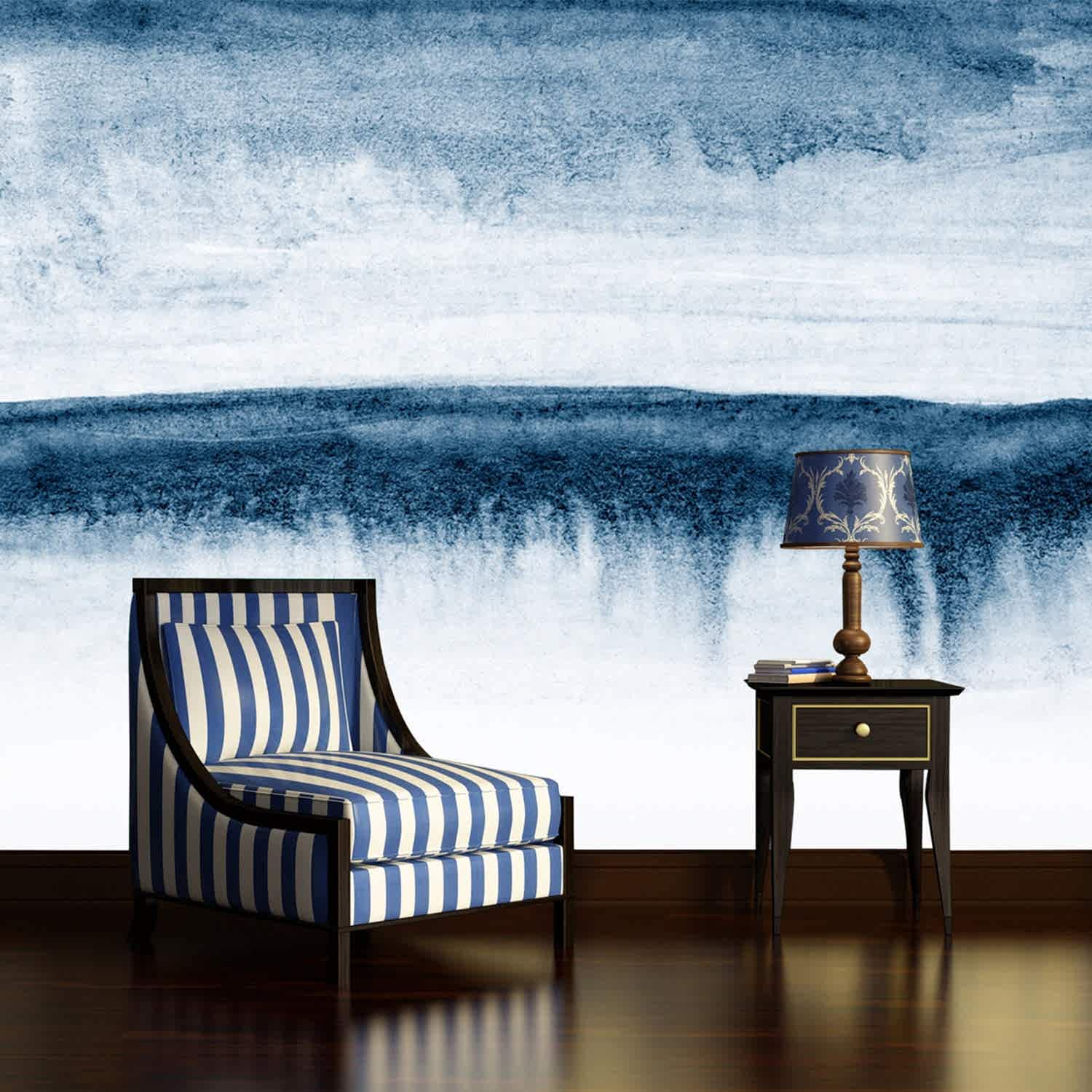 Sanat Duvar Kağıdı Mavi Beyaz Fırça Duvar Kağıdı