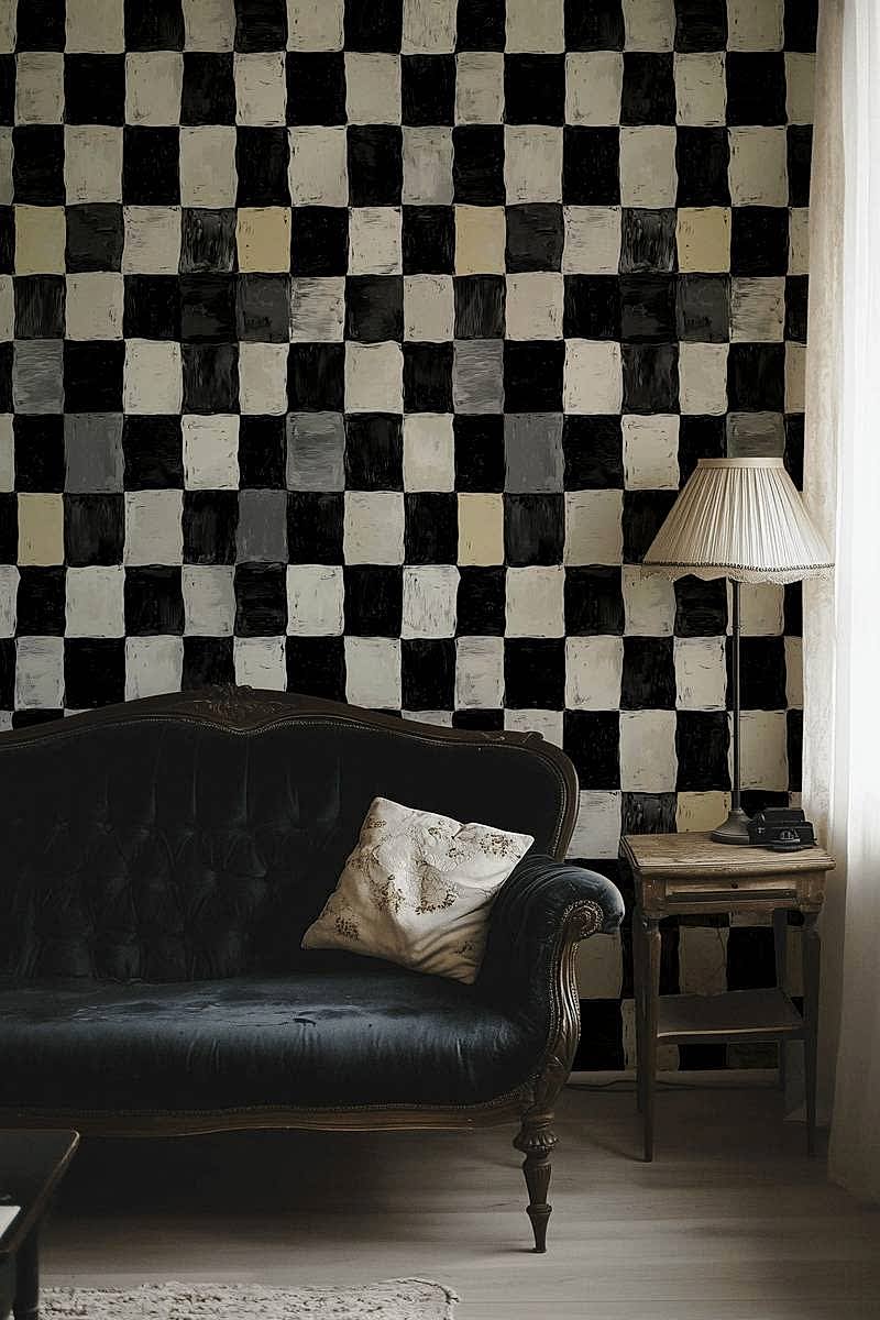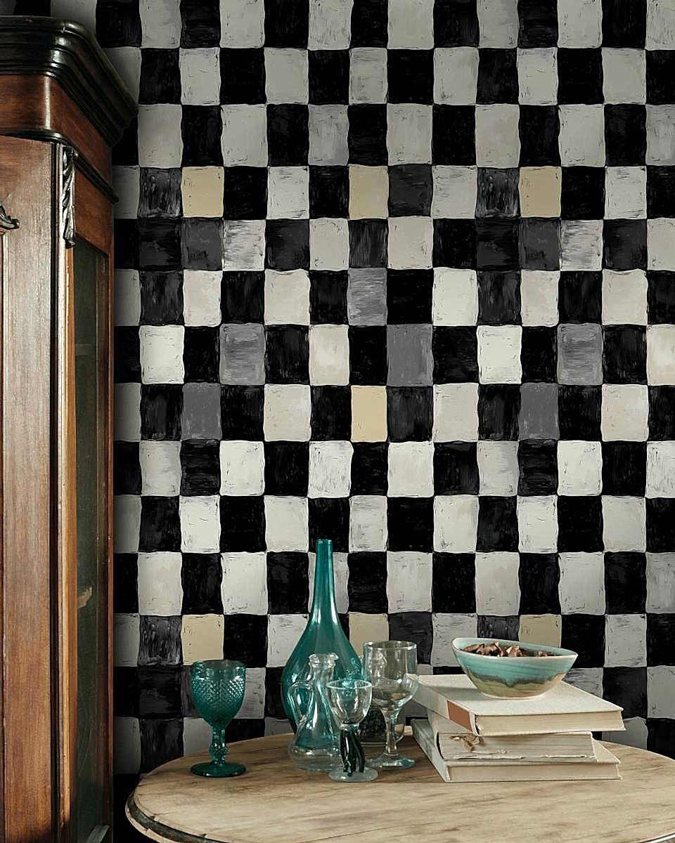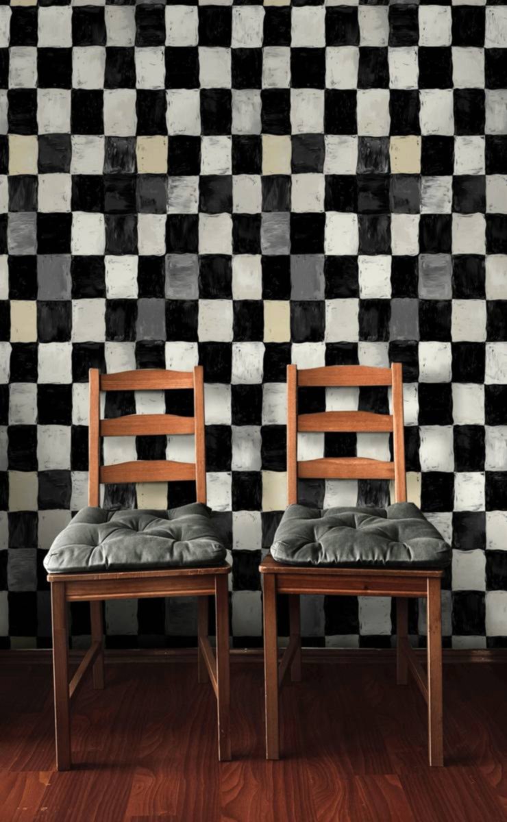 Bu duvar kağıdı, el boyaması damalı desenli, siyah, beyaz ve yumuşak gri tonlarında, ince fırça dokuları ile zanaatkar bir görünüm yaratıyor. Organik çeşitliliği, ızgaraya vintage ama modern bir hava katıyor, vurgu duvarları veya yaratıcı iç mekanlar için ideal.