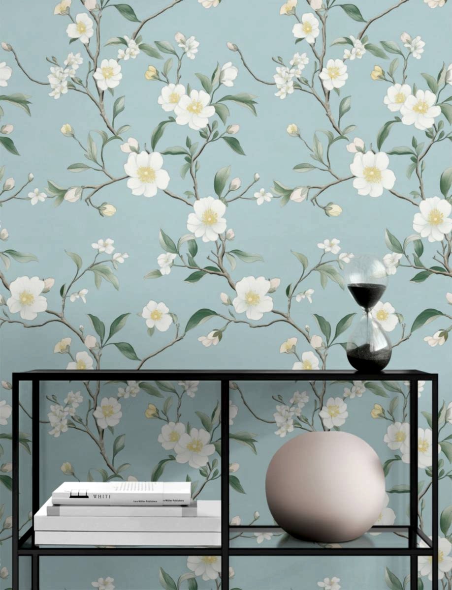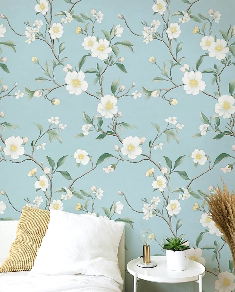 Bu narin suluboya tarzı duvar kağıdıyla mekanınızı dingin bir cennete dönüştürün. Soluk sarı, beyaz ve hafif pembe tonlarında yumuşak pastel çiçeklere sahip bu tasarım, doğanın nazik güzelliğini yakalar. Açık yeşil yapraklı ince, kıvrımlı dallar, yumuşak gök mavisi bir arka plana karşı yerleştirilmiştir ve yatak odaları, oturma odaları veya çocuk odaları için mükemmel, aydınlık ve havadar bir atmosfer yaratır. Soy ve yapıştır tasarımı, uygulanmasını ve çıkarılmasını kolaylaştırır ve dekorunuzu zahmetsizce yenilemenizi sağlar. İnce çizgilerin zarafetini ve yumuşak bir renk paletinin huzurunu takdir edenler için ideal olan bu duvar resmi, her iç mekana zarif ve rahatlatıcı bir hava katar.
