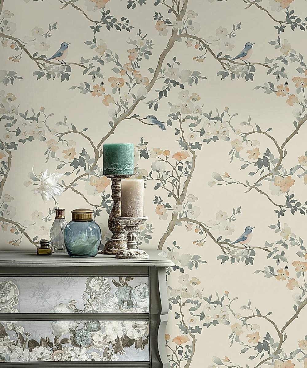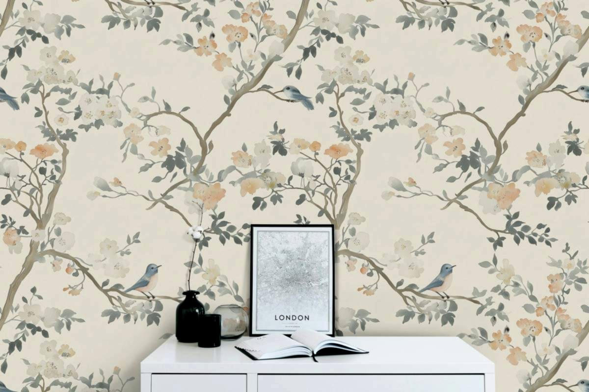Pastel Çiçek Duvar Kağıdının dingin güzelliğiyle mekanınızı dönüştürün. Bu zarif duvar kağıdı, yumuşak çiçekler arasında tüneyen kuşların narin bir tasarımını sunar ve her odada sakin ve davetkar bir atmosfer yaratmak için mükemmeldir. Mavi, gri ve şeftali tonlarının yumuşak tonları, ince bir renk dokunuşu katarken, dalların ve çiçeklerin karmaşık detayları doğanın cazibesini iç mekana taşır. Yatak odaları, oturma odaları veya yemek alanları için ideal olan bu soyulup yapıştırılabilen duvar kağıdı, dekorunuzu sofistike ve zamansız bir görünümle yenilemenizi kolaylaştırır.