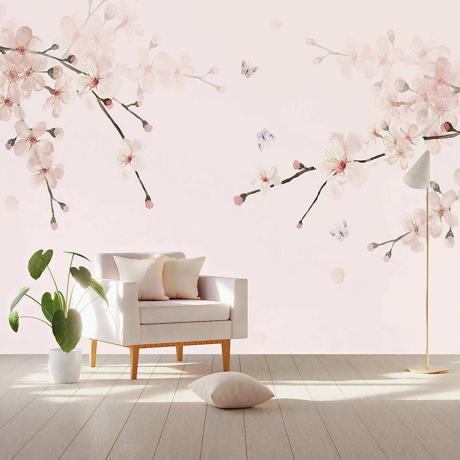 Pembe Çiçekli Ağaç Dalları Duvar Kağıdı