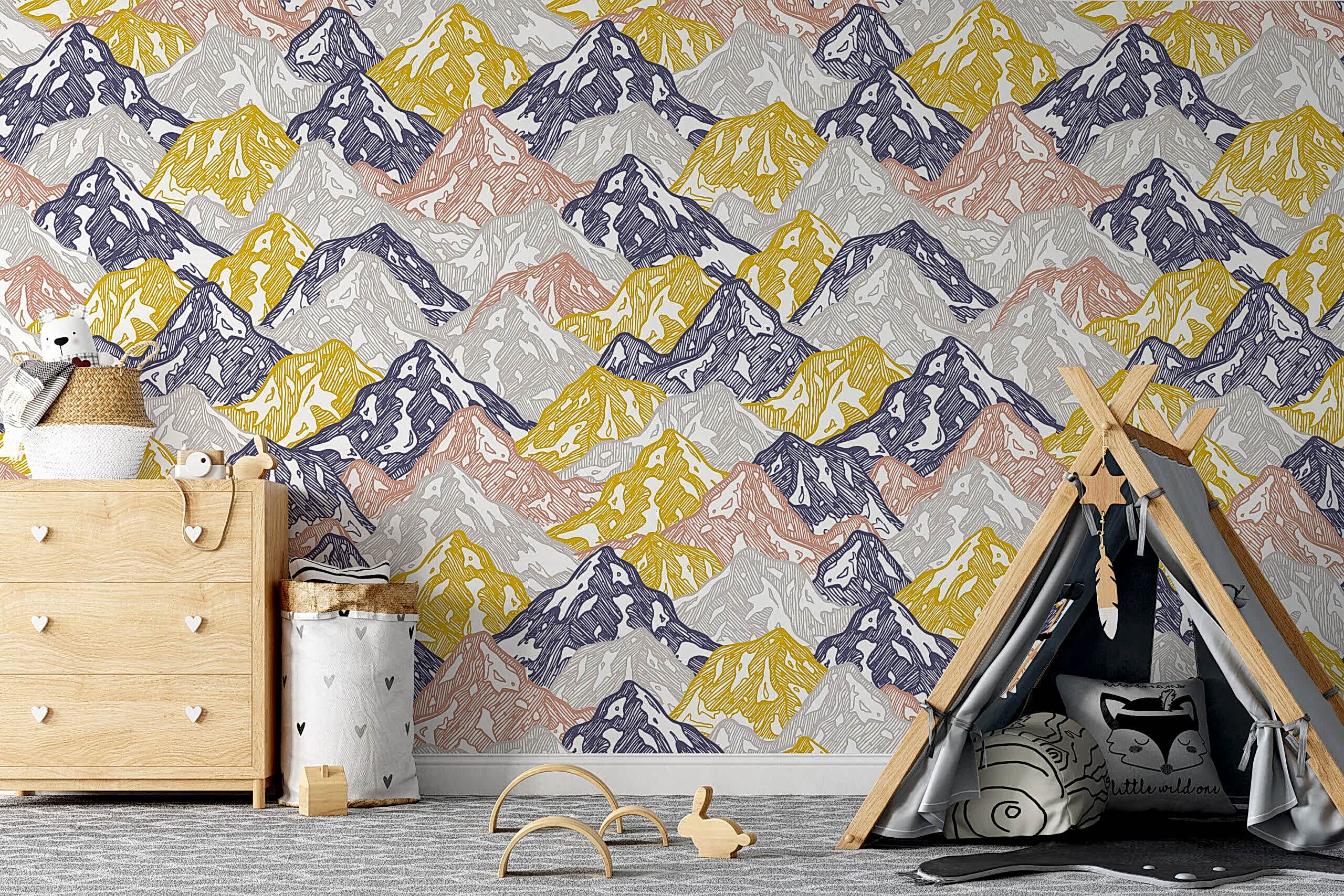 Çocuk Duvar Kağıdı Renkli Eğlenceli Karlı Dağlar Soyut Resimde Duvar Kağıdı