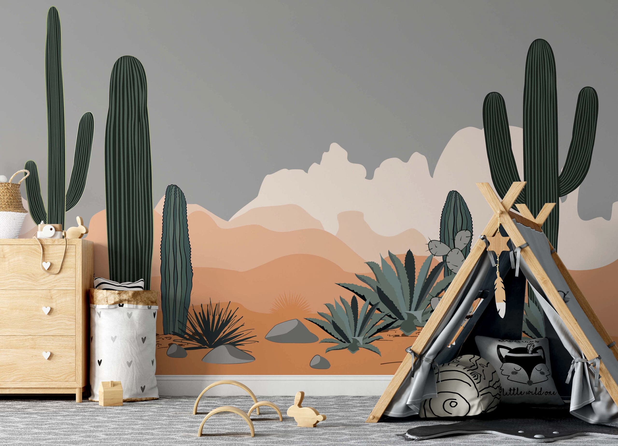 Çocuk Duvar Kağıdı Saguaro Dağı Çöl Bitkileri Kaktüsler Duvar Kağıdı