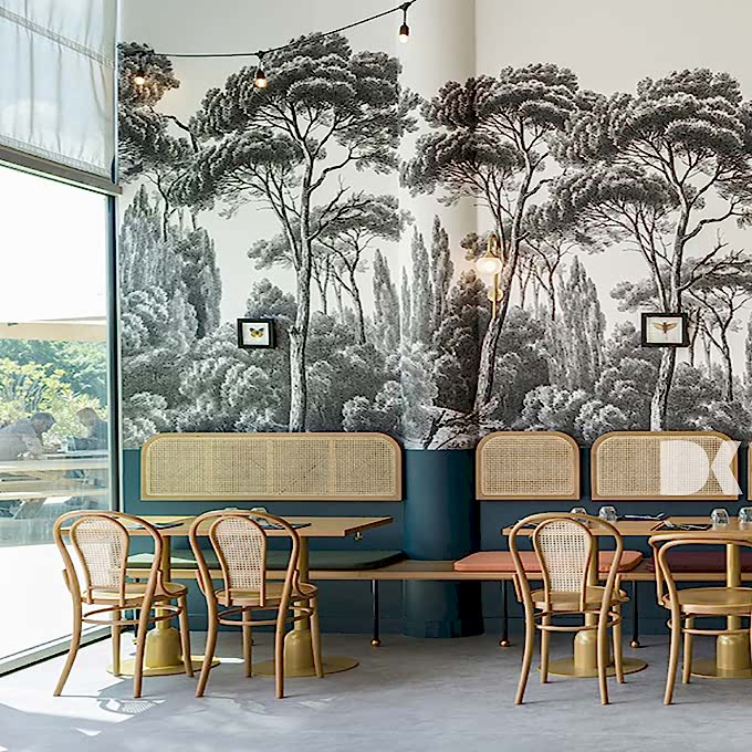 Siyah ve Beyaz Orman Desenli Duvar Kağıdı