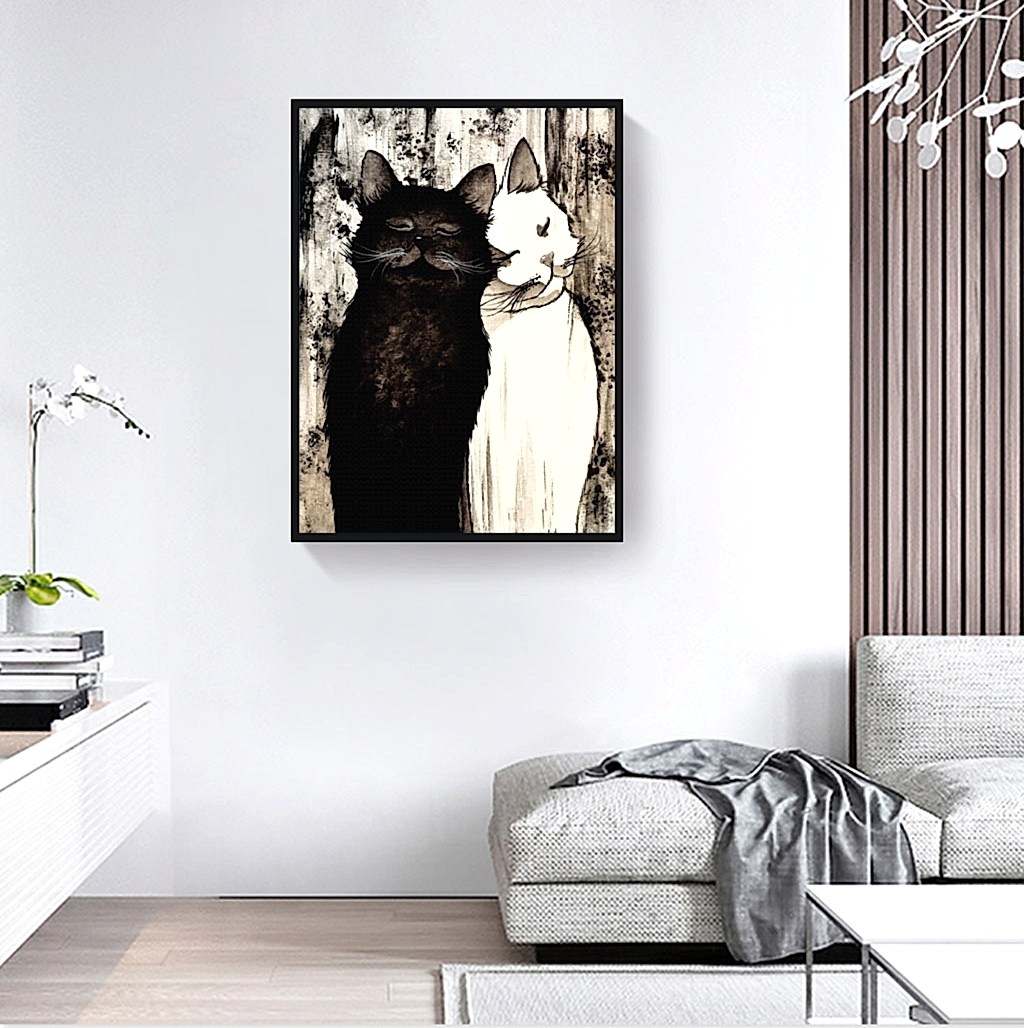 Siyah ve Beyaz Sevimli mi Sevimli Kediler Kanvas Tablo
