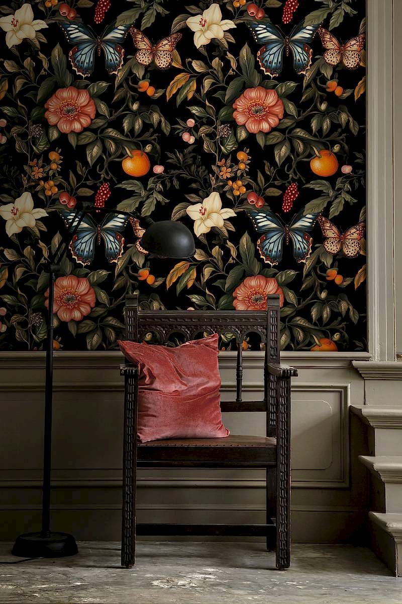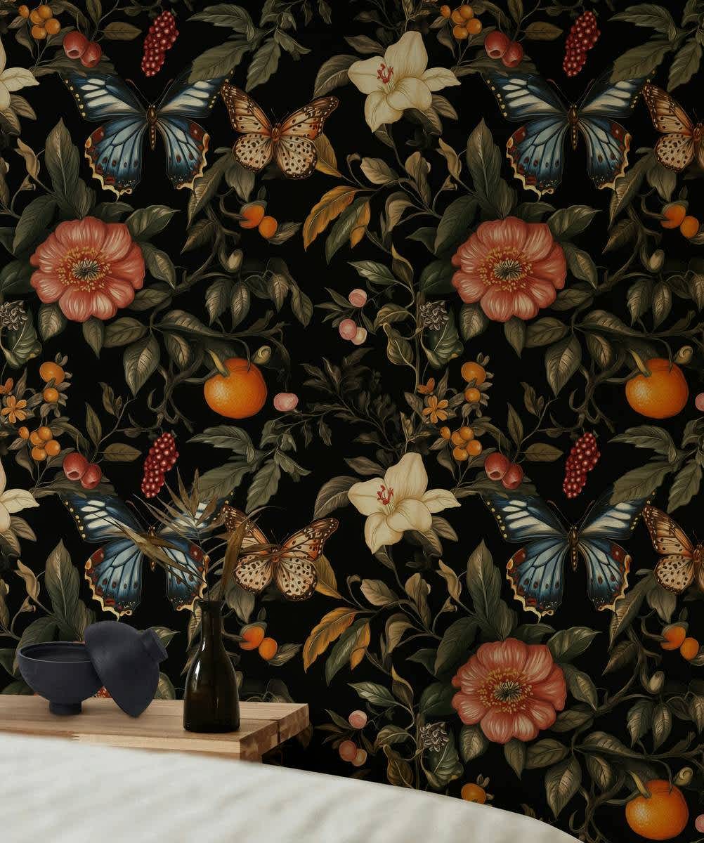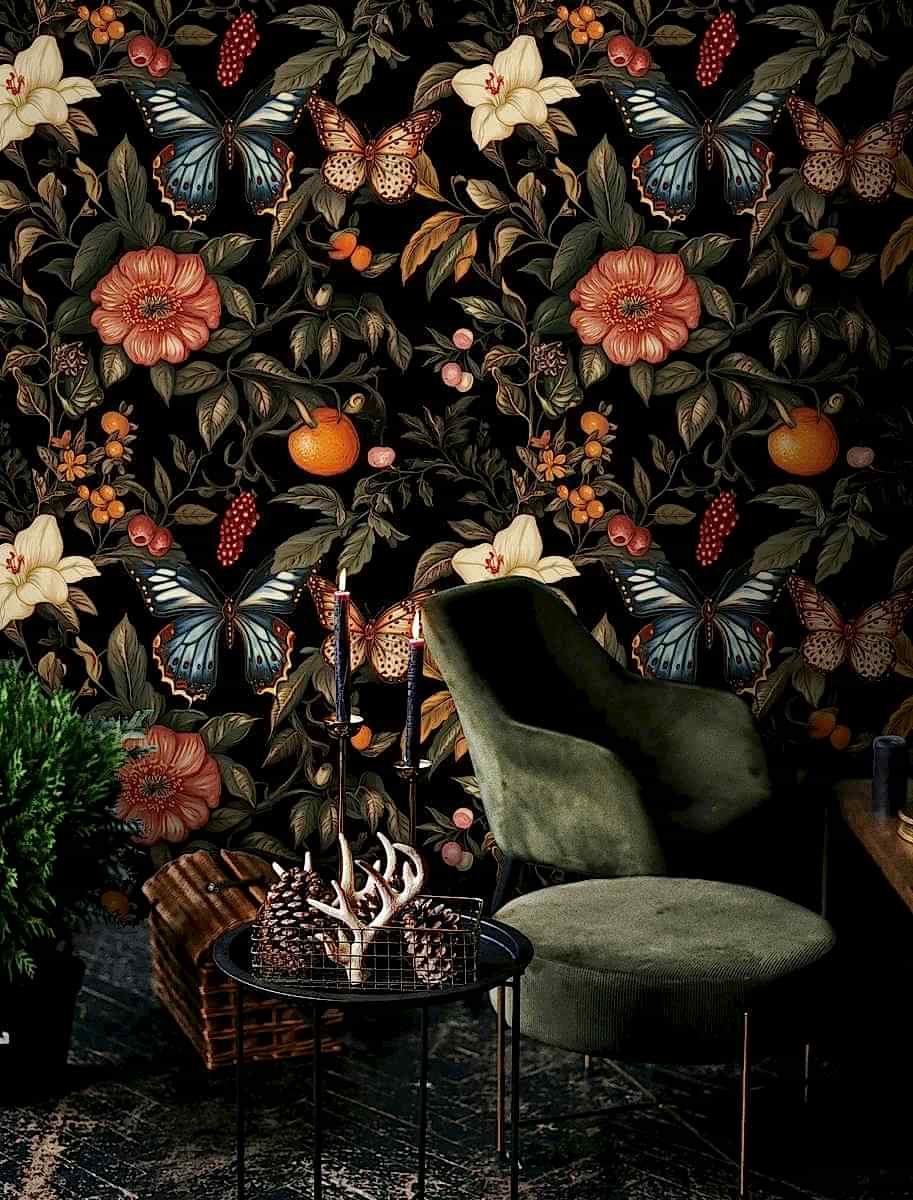 Tropikal Bahar, egzotik çiçekler, kelebekler ve meyve dallarının zarif bir uyumla harmanlandığı göz alıcı bir tasarım sunar. Siyah zemin üzerindeki detaylı illüstrasyonlar, doğanın gizemli ve canlı güzelliğini modern mekanlara taşıyor. Zarif kelebeklerin hareket kattığı bu tasarım, çalışma odalarından oturma odalarına kadar her alana şıklık ve tazelik getirir. Doğayı evinizde hissetmek için mükemmel bir seçim!