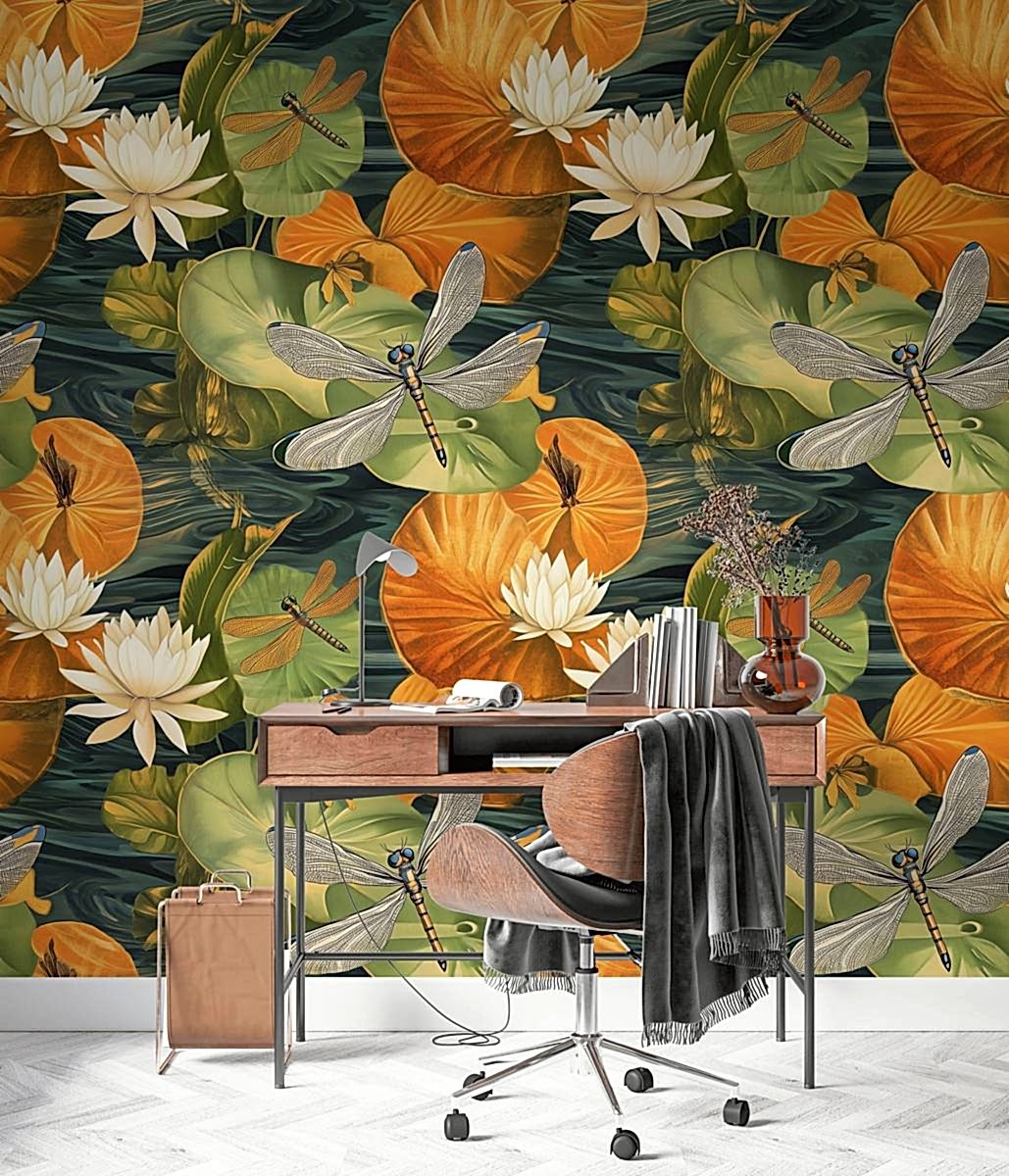 Doğanın huzur veren renkleri ve zarif detaylarıyla tasarlanan “Suda Dans Eden Kanatlar,” su nilüferleri ve narin yusufçukların armonisini evinize taşıyor. Göz alıcı turuncu ve yeşil tonlarının akışı, ferah bir atmosfer sunarken doğal zarafeti hissettiriyor. Çalışma alanları, oturma odaları veya yatak odaları için ideal olan bu tasarım, doğa ile iç içe bir yaşam alanı yaratmak isteyenler için mükemmel bir tercih.