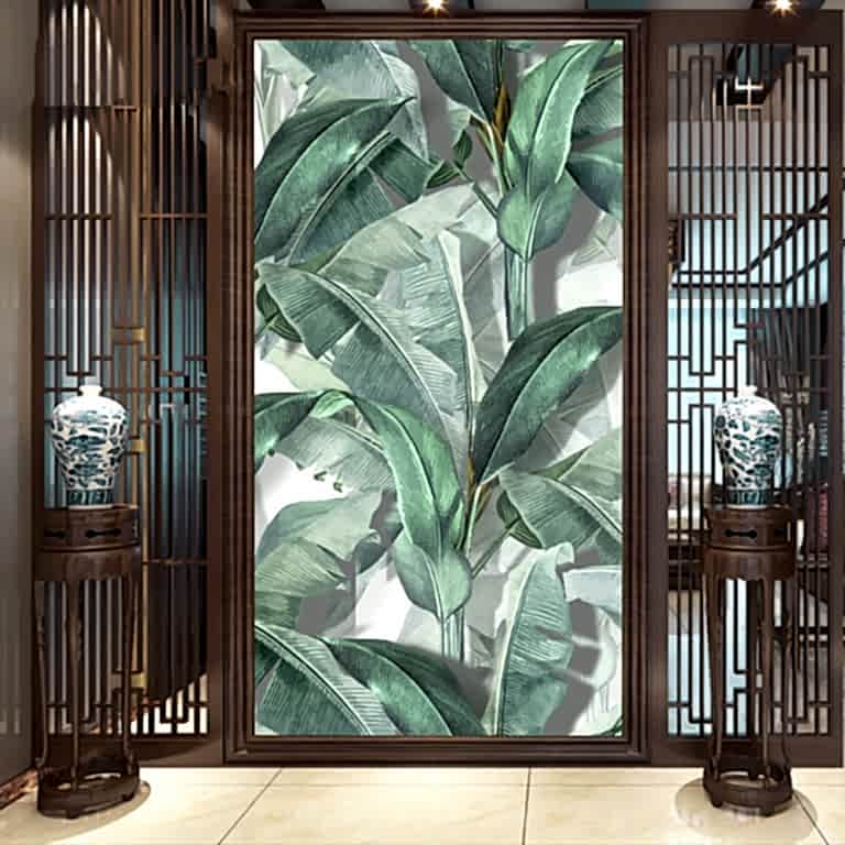 Tropikal Bitki Yaprakları ve Beyaz Çiçek Duvar Kağıdı