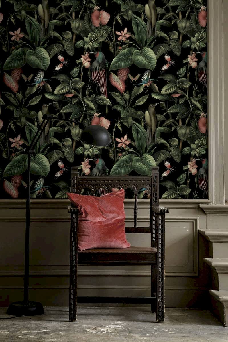 Bu çarpıcı gece temalı duvar kağıdı duvar resmiyle mekanınızı gizemli ve büyüleyici bir tropikal cennete dönüştürün. Zengin, koyu bir arka plana karşı yer alan bu tasarım, egzotik kuşların, canlı kelebeklerin ve yemyeşil tropikal bitkilerin yemyeşil, ayrıntılı çizimlerini içeriyor. Karmaşık sanat eseri, zarif balıkçılları veya turnaları, narin pembe çiçekleri ve koyu yeşil tonlarda çeşitli büyük, dramatik yaprakları sergiliyor. Renkli kelebekler sahneye bir tutam tuhaflık ve hareket katıyor. Bu duvar kağıdı, yatak odaları, yemek odaları veya oturma alanlarındaki gösterişli duvarlar için mükemmel, sofistike, kasvetli bir atmosfer yaratıyor. Yüksek kaliteli baskı, duvarlarınıza derinlik ve doku katarak, gece vakti tropikal bir bahçenin güzelliğini ve gizemini evinize davet ediyor.