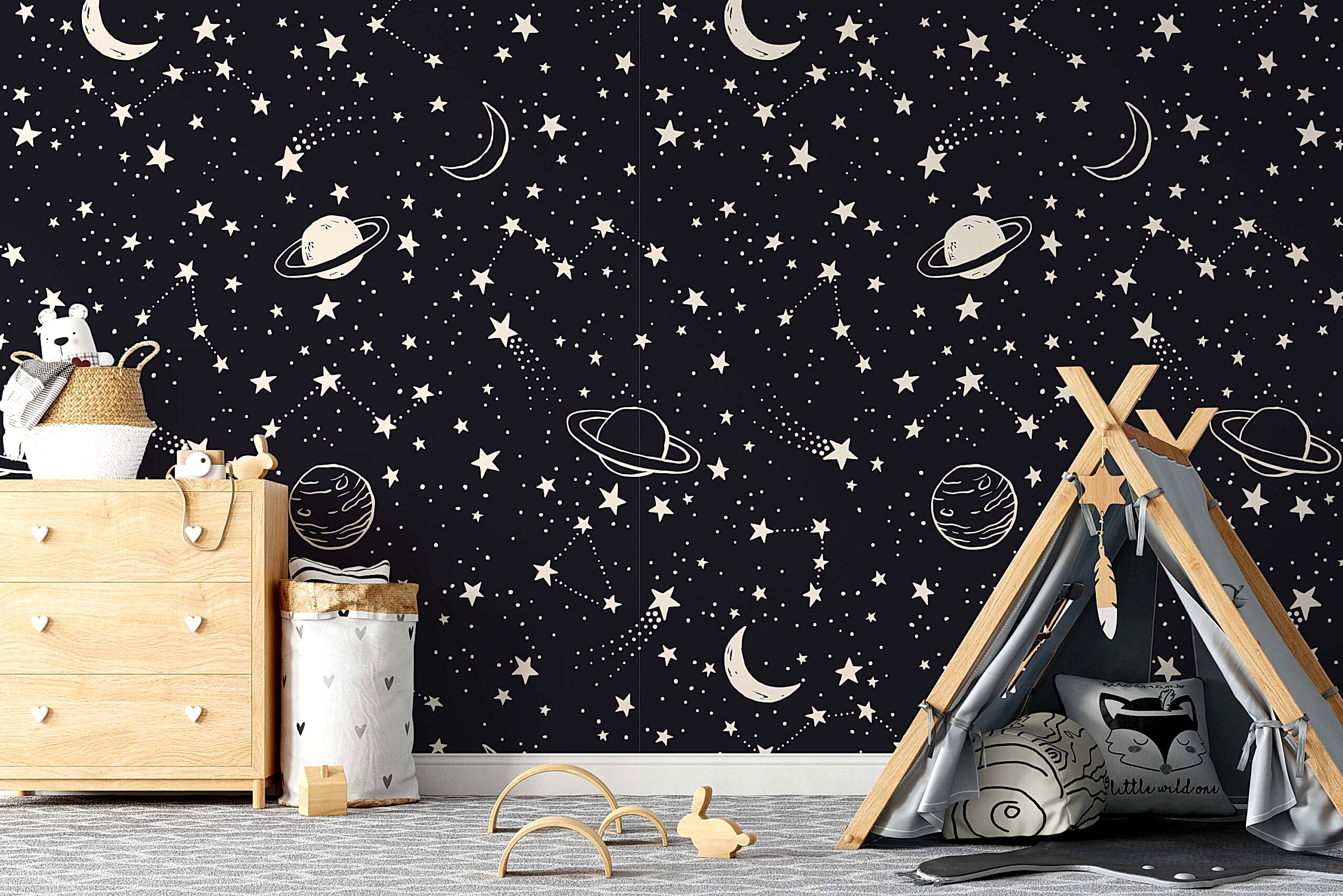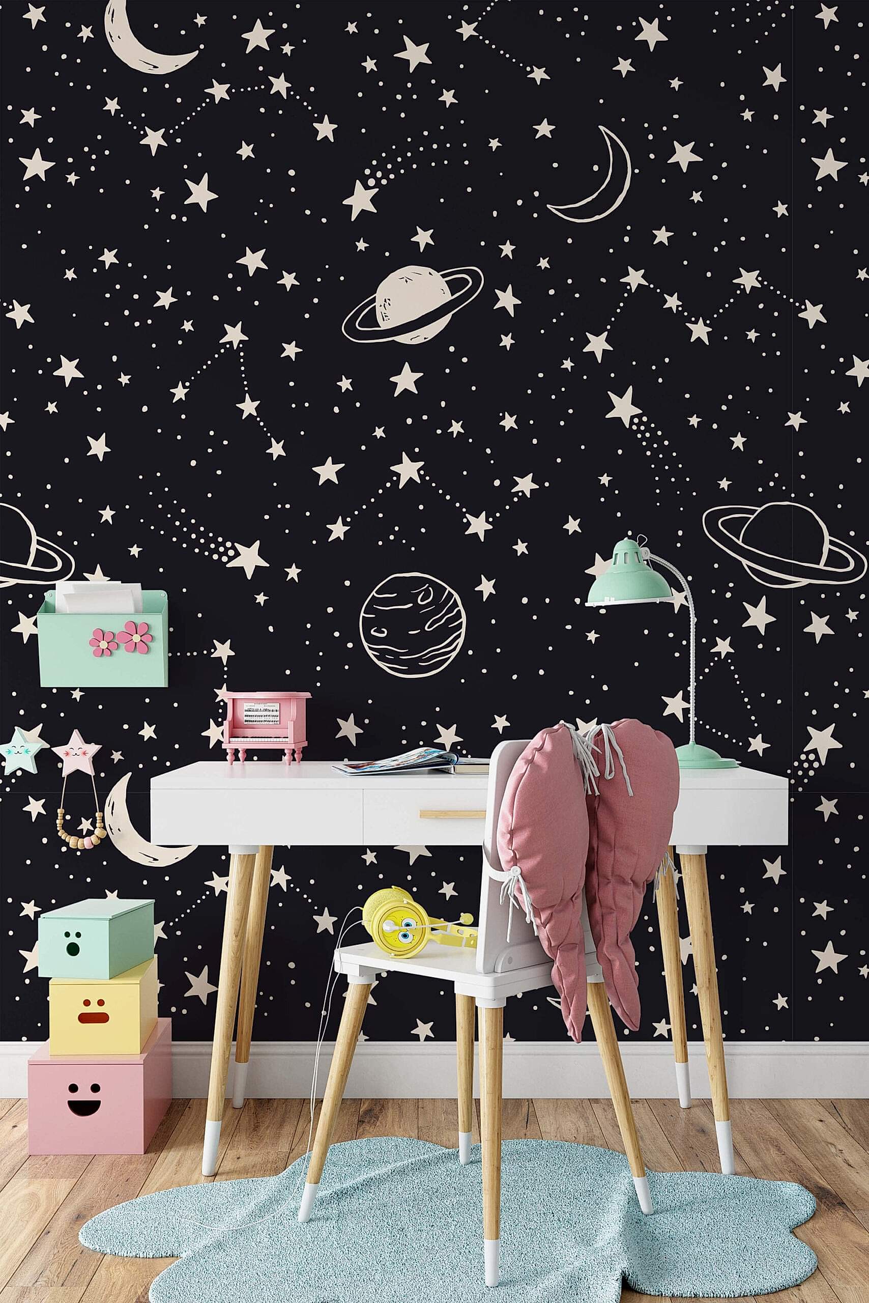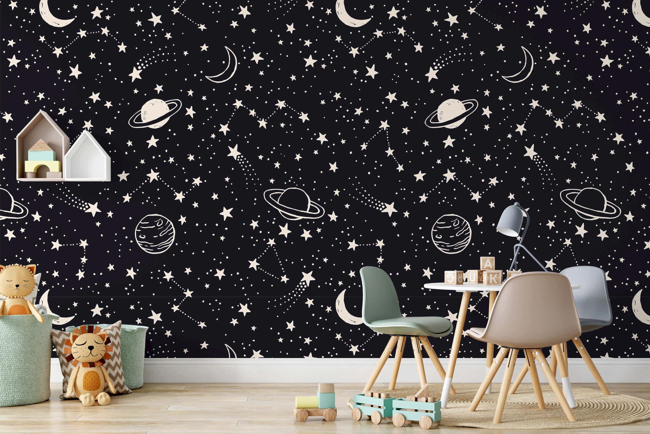 Çocuk Duvar Kağıdı Uzay Gezegenler Kuyruklu Yıldızlar Takımyıldızları Duvar Kağıdı