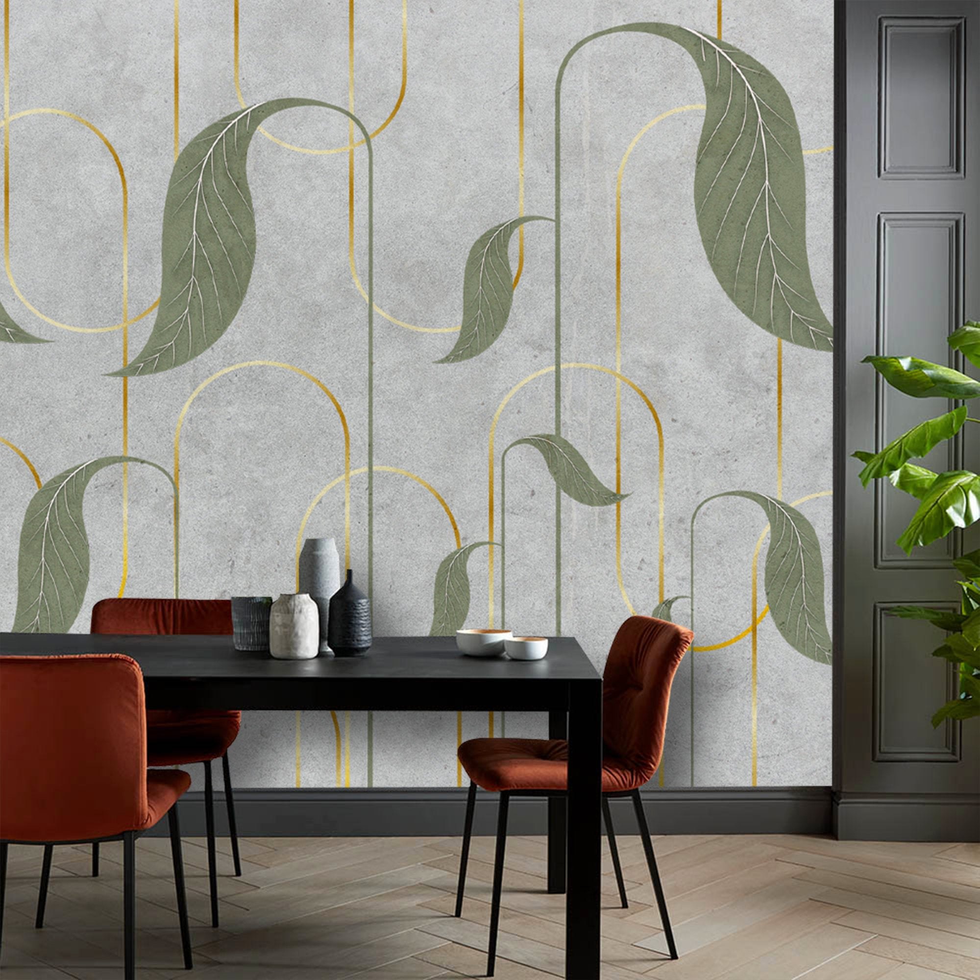 Çiçek Duvar Kağıdı Uzun Kök Yapraklar Gri Arka Plan Çiçekli Duvar Kağıdı