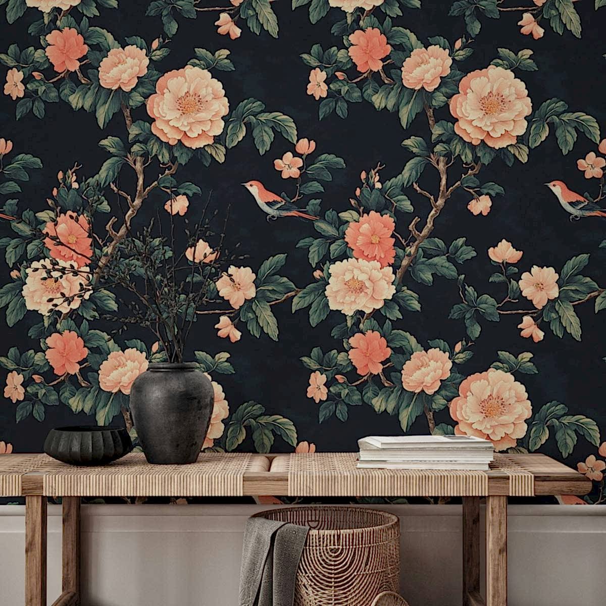 Karanlık bir arka planda zarif pembe şakayıklar ve narin kuşlar içeren Vintage Çiçek ve Kuş Duvar Kağıdımızla evinizi güzelleştirin. Bu klasik botanik duvar resmi her odaya zamansız bir güzellik ve dinginlik katar; oturma odaları, yatak odaları veya zarif ve sanatsal bir atmosfere ihtiyaç duyan her alan için mükemmeldir. Yüksek kaliteli malzemelerden üretilen bu duvar kağıdının uygulanması kolay ve dayanıklıdır, evinizde uzun ömürlü, sofistike bir görünüm sağlar.