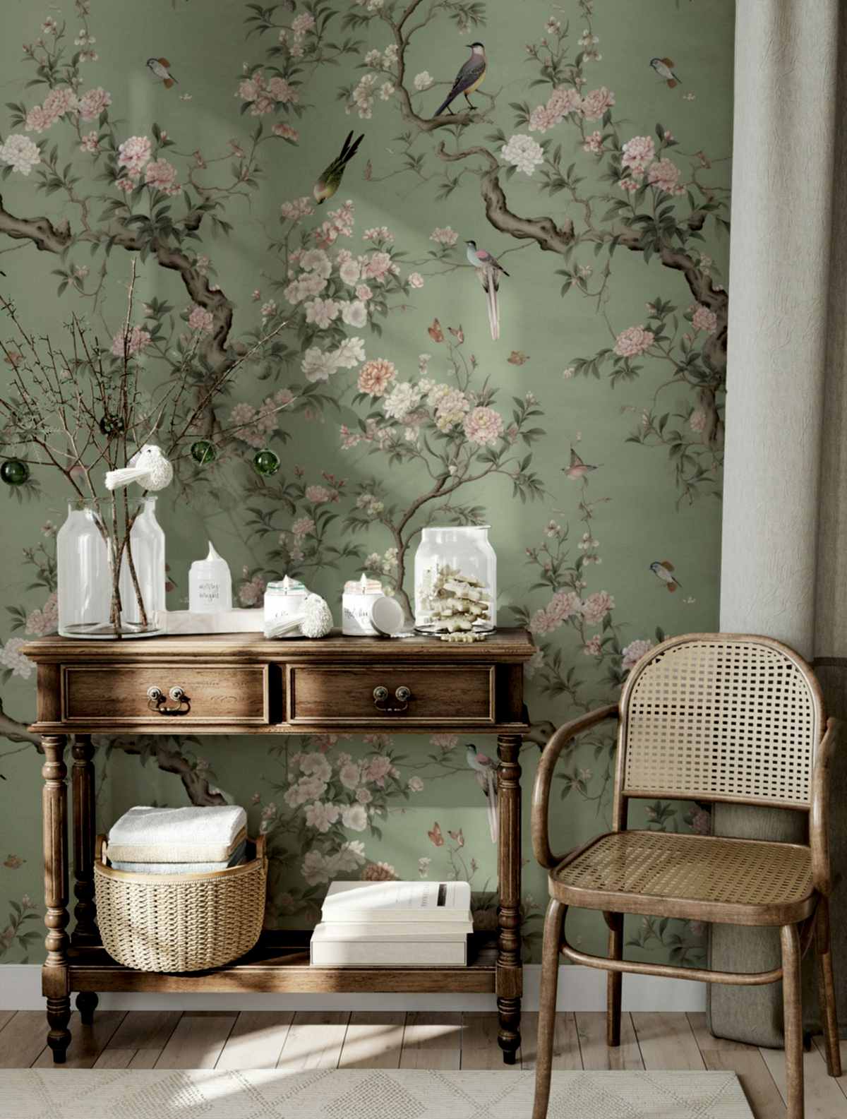 Zarif Çin Şakayık Çiçeği Duvar Kağıdımızla mekanınızı sakin bir sığınağa dönüştürün. Çin sanatının zamansız sanatından ilham alan bu duvar kağıdı, zarif Çin kuşlarıyla iç içe geçmiş yemyeşil şakayık çiçeklerine sahiptir. Kesintisiz bir akış için kesintisiz desenli vintage tasarım, her odaya sofistike ve huzur dolu bir hava katıyor. Çarpıcı vurgulu bir duvar oluşturmak veya odanın tamamını yenilemek için mükemmel olan bu duvar kağıdı, hem modern hem de geleneksel dekor için idealdir.